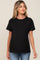 A basic solid maternity short sleeve tee with raw hem details and a round neckline.