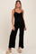 Black Ribbed Cinched Front Maternity Jumpsuit