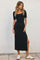 Black Ribbed Short Sleeve Side Slit Midi Dress