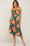 A ribbed midi dress featuring adjustable straps, a v-neckline, and a lettuce trim hem.
