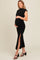 Black Ruched Mock Neck Maternity Slit Midi Dress