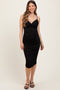 Black Ruched Sweetheart Neckline Midi Dress