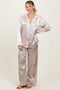 Black Satin Contrast Trim Long Sleeve Pajama Set