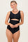 Black Scalloped Cutout Ruched One Piece Swimsuit