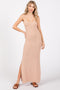 Details A knit midi dress featuring a rounded neckline and double side slits. Content + Care