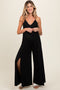 Black Sleeveless V-Neck Split Hem Jumpsuit