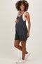 Black Solid Ribbed V-Neck Sleeveless Front Pocket Romper