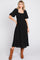 A solid hued midi dress featuring a smocked top, short puff sleeves and a square neckline.