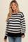 Stay cozy and stylish throughout your pregnancy with our Black Striped Basic Maternity Sweater. Crafted from soft, breathable knit fabric, this sweater features classic black and white stripes that add a timeless touch to your maternity wardrobe. Designed with a comfortable, relaxed fit and extra room to accommodate your growing bump, it’s perfect for layering or wearing on its own. The ribbed cuffs and hem ensure a snug yet flexible fit, while the crew neckline keeps it simple and chic. Pair it effortlessly with jeans or leggings for everyday comfort and style. Essential for every expecting mom’s closet!