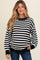 Stay cozy and stylish throughout your pregnancy with our Black Striped Crew Neck Maternity Sweater. Designed with soft, breathable knit fabric, this sweater offers gentle stretch to accommodate your growing bump comfortably. The classic black and white horizontal stripes add a timeless touch, while the relaxed fit and ribbed cuffs provide extra warmth and ease of movement. Perfect for layering or wearing on its own, this versatile sweater pairs effortlessly with your favorite maternity jeans or leggings. Embrace comfort and chic simplicity with this maternity essential made for all seasons.