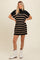 Step out in effortless style with our Black Striped Knit Contrast Stitch Mini Dress. Featuring a cozy knit fabric and bold horizontal stripes, this mini dress offers both comfort and eye-catching appeal. The unique contrast stitching around the edges adds a stylish, handcrafted touch, while the relaxed fit and short sleeves create a laid-back vibe perfect for any casual outing. Pair it with your favorite boots or sneakers for a chic, modern look that transitions seamlessly from day to night. Embrace comfort and trend-setting design with this must-have wardrobe staple.