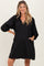 Black Textured Collared 3/4 Puff Sleeve Maternity Dress