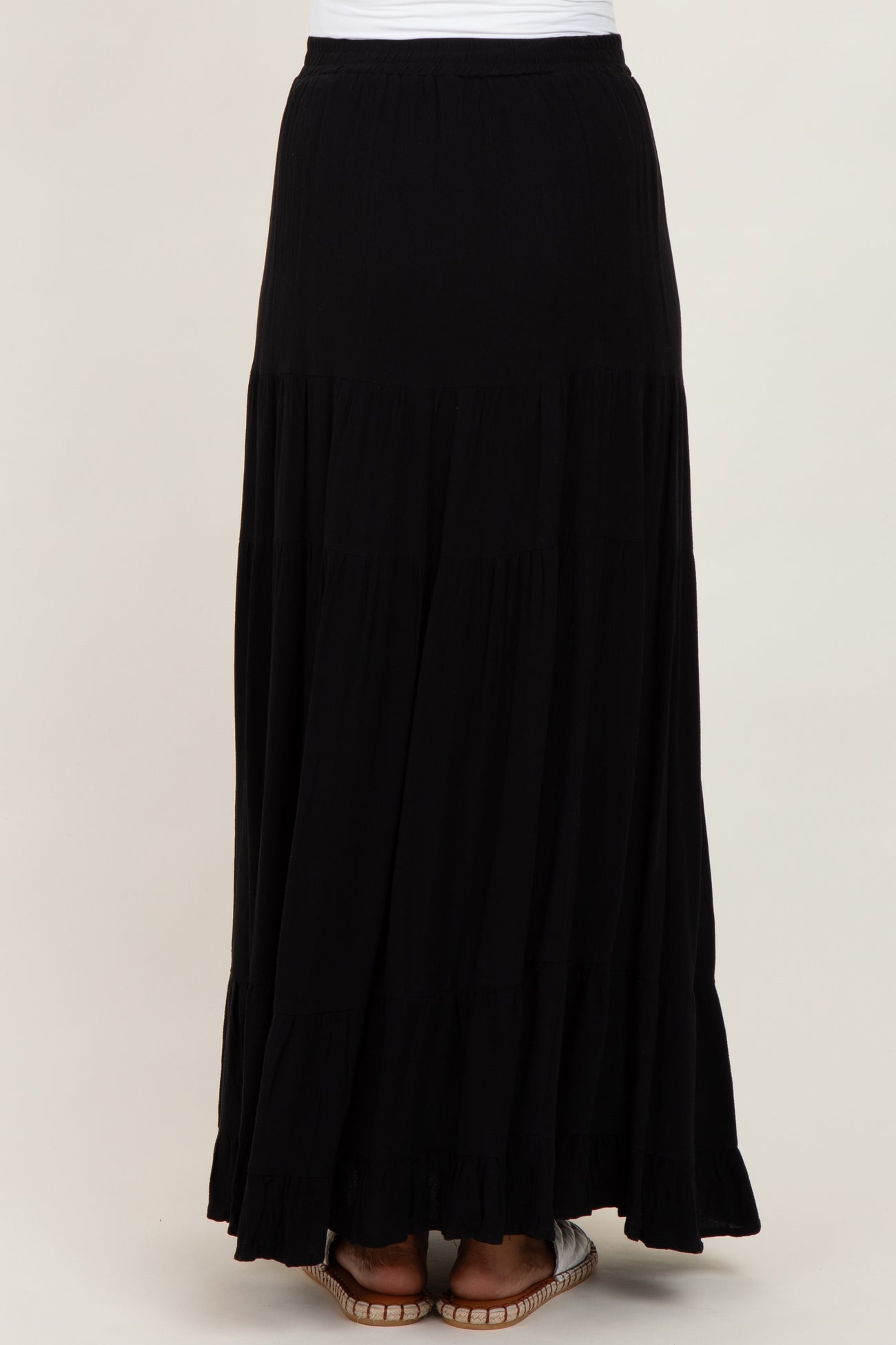 Black Tiered Ruffle Hem Maternity Maxi Skirt