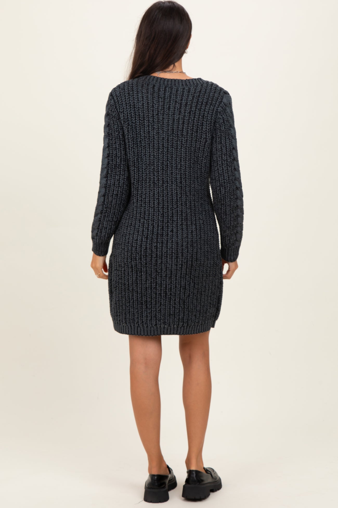 Step into cozy sophistication with our Black Two Tone Cable Knit Mini Sweater Dress. Crafted with a stunning cable knit pattern in contrasting black tones, this dress blends texture and style effortlessly. The mini length adds a flirty edge, while the long sleeves and crew neckline keep it classic and warm. Perfect for layering or wearing solo, it pairs beautifully with ankle boots or chunky loafers for a chic autumn or winter look. Soft, comfortable, and figure-flattering, this sweater dress is a versatile wardrobe staple for your cooler days. Embrace comfort without sacrificing style!