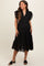 Black V-Neck Eyelet Detail Ruffle Shoulder Tiered Maternity Midi Dress