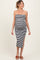 Black/White Striped Strapless Fitted Maternity Maxi Dress
