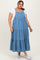 Effortlessly cute and endlessly comfy—our Blue Chambray Overall Tiered Plus Midi Dress is a summer essential! Crafted from lightweight chambray, this dress features adjustable overall straps and a breezy, tiered midi silhouette that flatters your curves. Side pockets add practicality, while the washed blue hue keeps your look fresh and on-trend. Pair with sneakers for weekend errands, or dress it up with sandals for brunch with your girls. Perfect for layering with tees or tanks, this plus size dress brings fun and versatility to your warm-weather wardrobe!