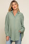 A chunky soft knit sweater featuring a v-neckline, long dolman sleeves, ribbed trim and side slits.