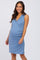 A solid, sleeveless maternity dress featuring a wrap v-neckline.