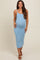 Blue Fitted Spaghetti Strap Maternity Midi Dress