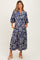 Blue Floral 3/4 Sleeve Smocked Waist Maternity Midi Dress