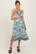 Blue Floral Border Print Cutout Maternity Midi Dress
