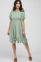 A floral, lightweight plus size dress featuring a v-neckline, functioning front buttons, ruffle trimmed short sleeves, a tiered body, and side pockets.