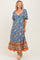 Blue Floral Front Twist Midi Dress