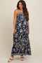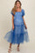 Blue Floral Lined Smocked Tulle Maternity Midi Dress
