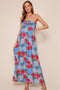 Blue Floral Off Shoulder Puff Sleeve Midi Dress