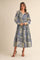 Blue Floral Patchwork Print Front Tie Midi Dress