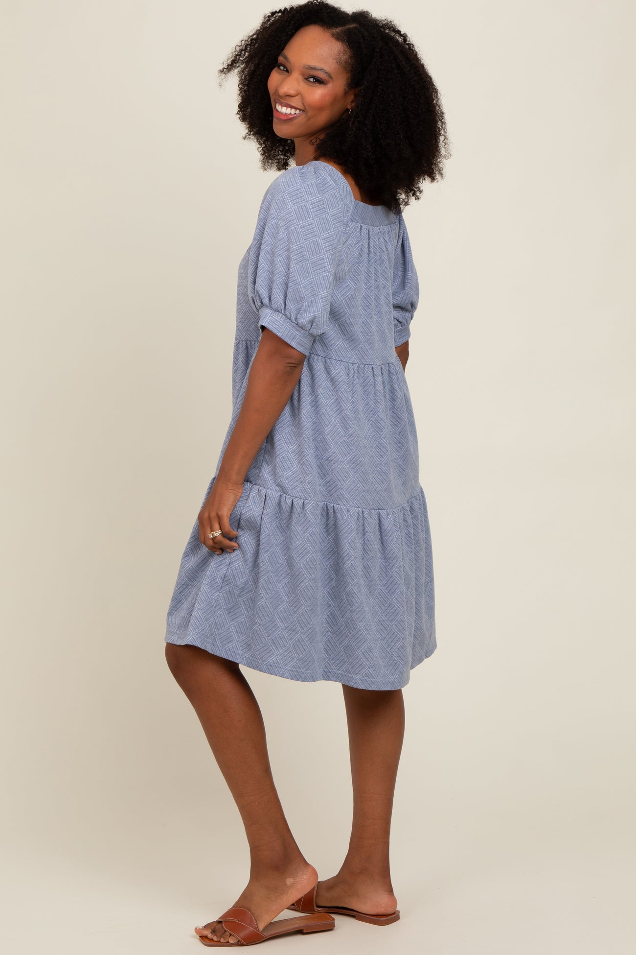 Blue Jacquard Tiered Dress