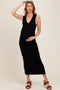 Blue Knit Collared Deep V-Neck Maternity Maxi Dress