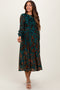 Blue Paisley Front Tie Ruffle Trim Midi Dress