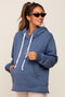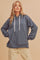 A sweatshirt featuring a front pocket, long sleeves, an adjustable drawstring and a hood.