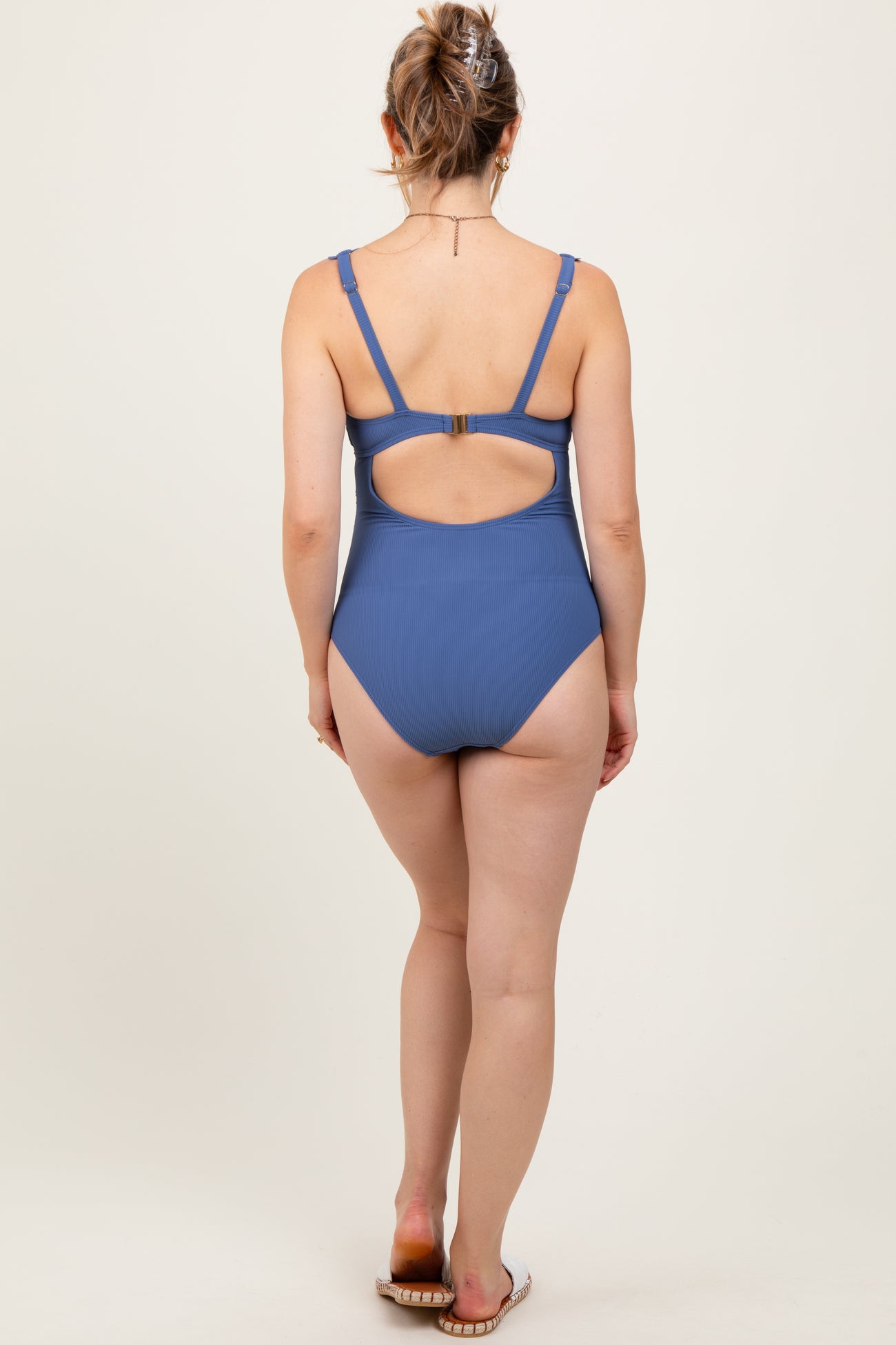 Blue Scallop Trim Maternity One Piece Swimsuit