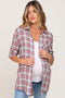 A solid hued blouse featuring short sleeves, a v-neckline, a higher collar and a slight drop shoulder.