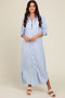 Blue Smocked Ruffle Layered Short Sleeve Tiered Maternity Maxi Dress