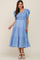 Blue Smocked Tiered Ruffle Maternity Midi Dress