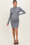 Blue Solid Ribbed Ruched Long Sleeve Top