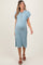 Blue Solid Ribbed Short Sleeve Button Down Knit Maternity Midi Dress