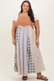 Elevate your everyday style with this plus maxi dress featuring a unique colorblock design and a flattering denim contrast bodice. The adjustable straps and button details add a chic touch while ensuring a comfortable fit. Crafted from a soft, breathable fabric, the flowing maxi skirt is designed with vertical and diagonal stripes that create a slimming silhouette. Perfect for casual outings or weekend brunches, this dress pairs effortlessly with sneakers or sandals. Easy to wear, comfortable, and stylish—your new go-to piece for laid-back, confident looks.