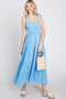 Blue Striped Smocked Shoulder Tie Maternity Midi Dress