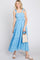 Blue Striped Smocked Shoulder Tie Midi Dress