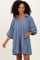 Blue Textured Collared 3/4 Puff Sleeve Dress