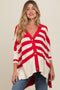 Blue Textured Knit Striped Oversized Maternity Cardigan