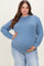 Blue Textured Ribbed Long Sleeve Maternity Plus Top