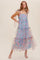 Blue Tiered Floral Print Organza Maxi Dress