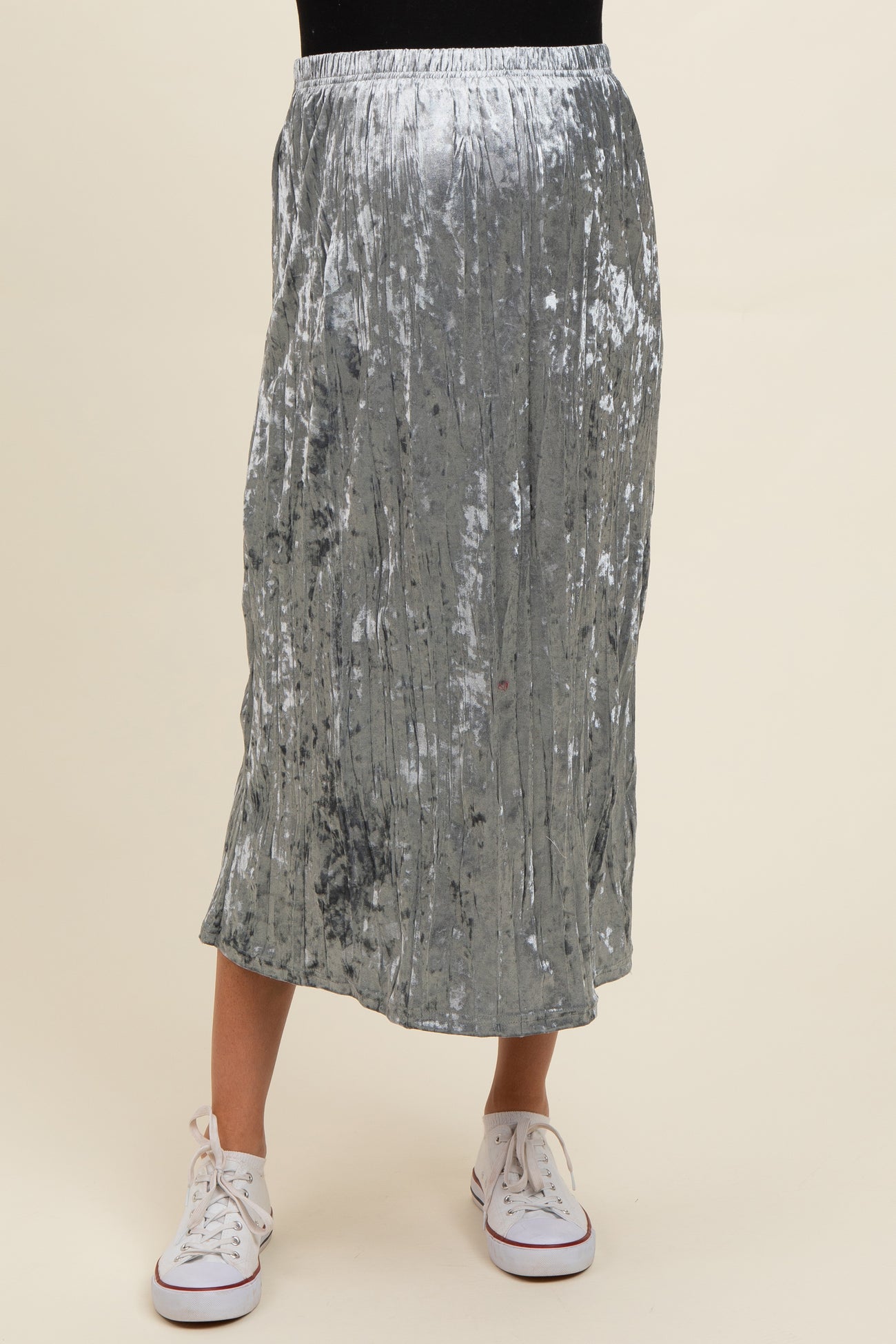 Elevate your maternity wardrobe with our Blue Velvet Crinkled Maternity Midi Skirt. Crafted from soft, luxurious velvet with a stylish crinkled texture, this skirt offers both comfort and elegance for every stage of pregnancy. The stretchy waistband gently hugs your growing bump without squeezing, while the midi length provides a chic, versatile look perfect for casual days or special occasions. Pair it with your favorite tops and sneakers for a trendy, effortless style. Easy to wear, easy to love—this skirt is a must-have for moms-to-be who want to feel confident and comfortable all day long.