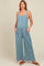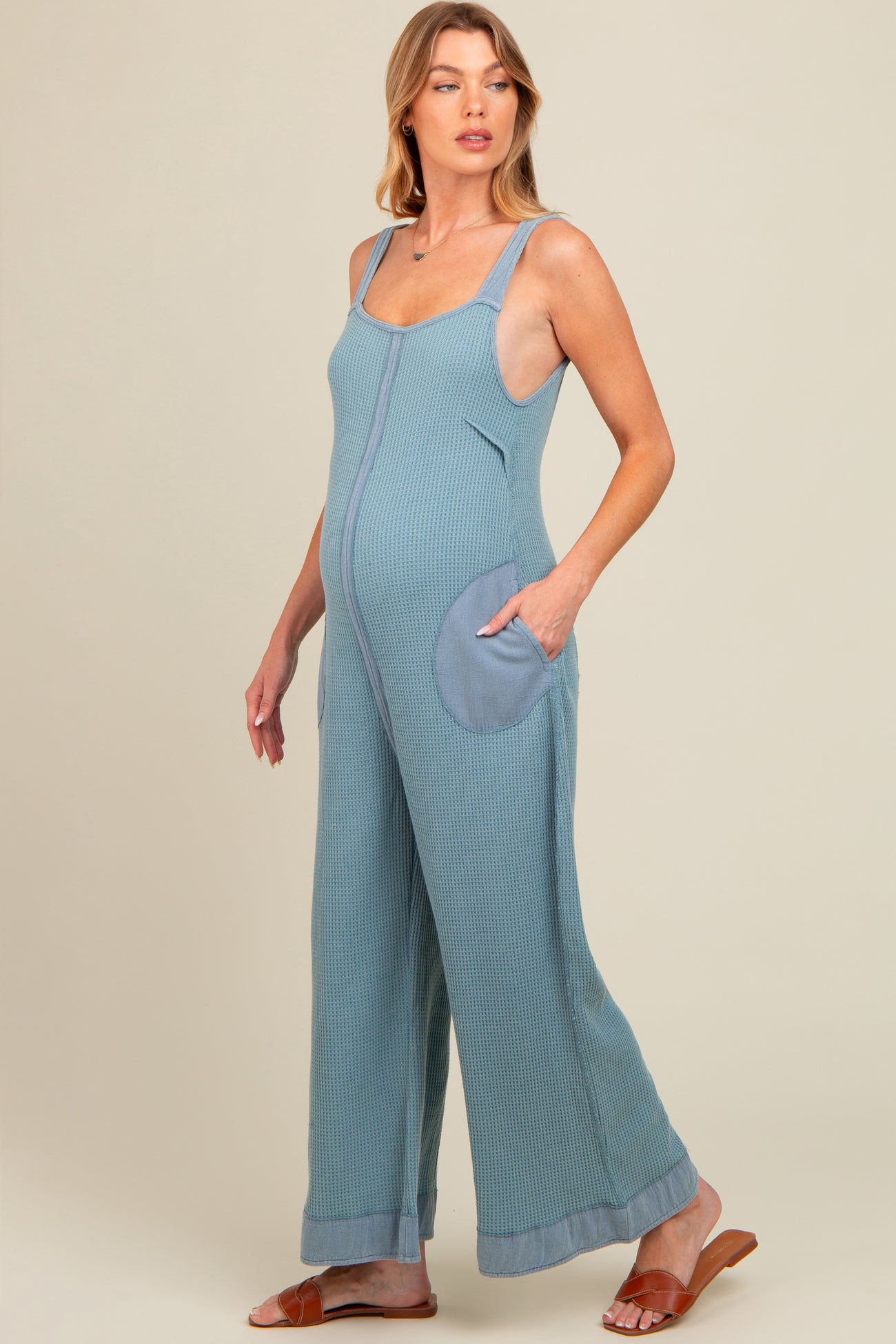 Blue Waffle Knit Wide Leg Maternity Jumpsuit